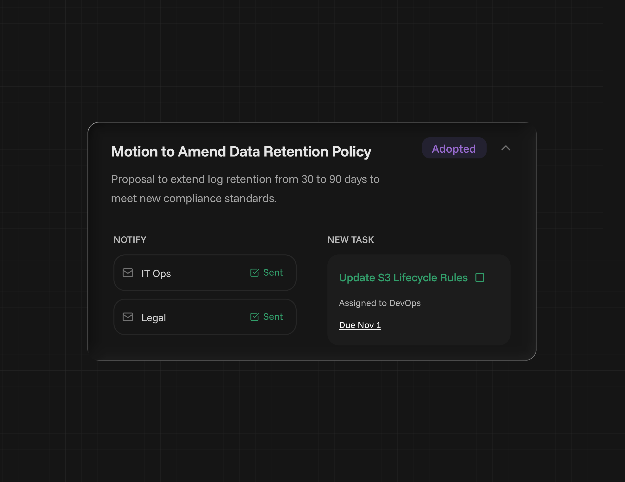 thinkwell™ helps by capturing minutes, linking proposals to outcomes, sending targeted notices, and keeping each stakeholder's context tied to the same underlying record.