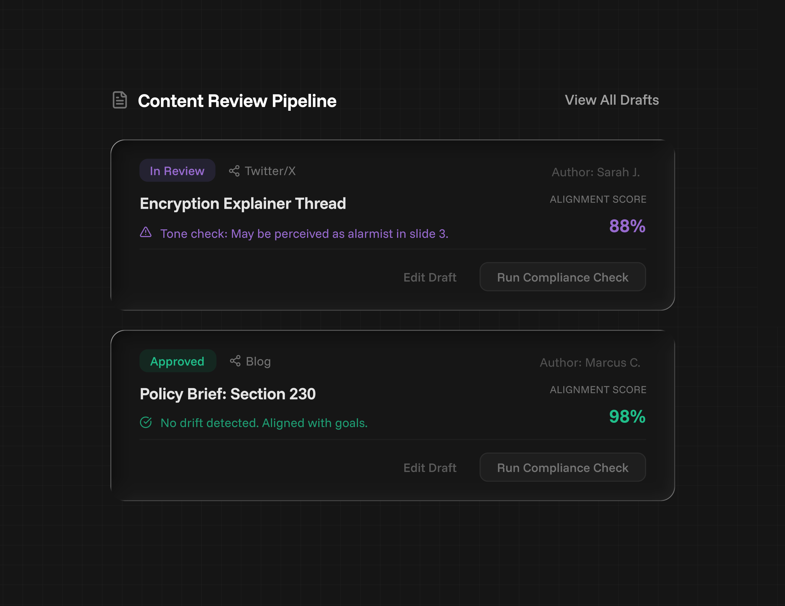 Tracking commitments, responses, and risks over time, so teams can stay principled, learn from outcomes, and avoid preventable backlash.