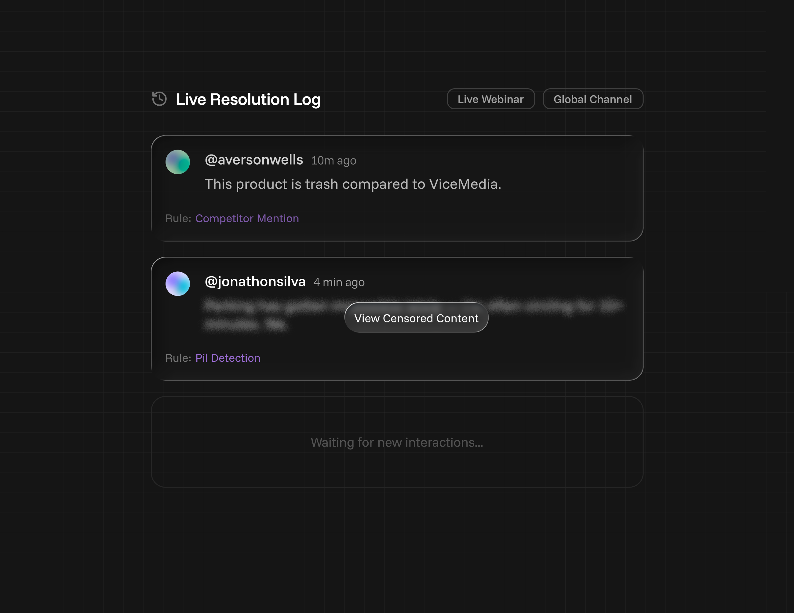 thinkwell™ lets you define those rules up front for comment sections, hosted discussions, webinars, and campaigns, then apply them consistently while things are live.
