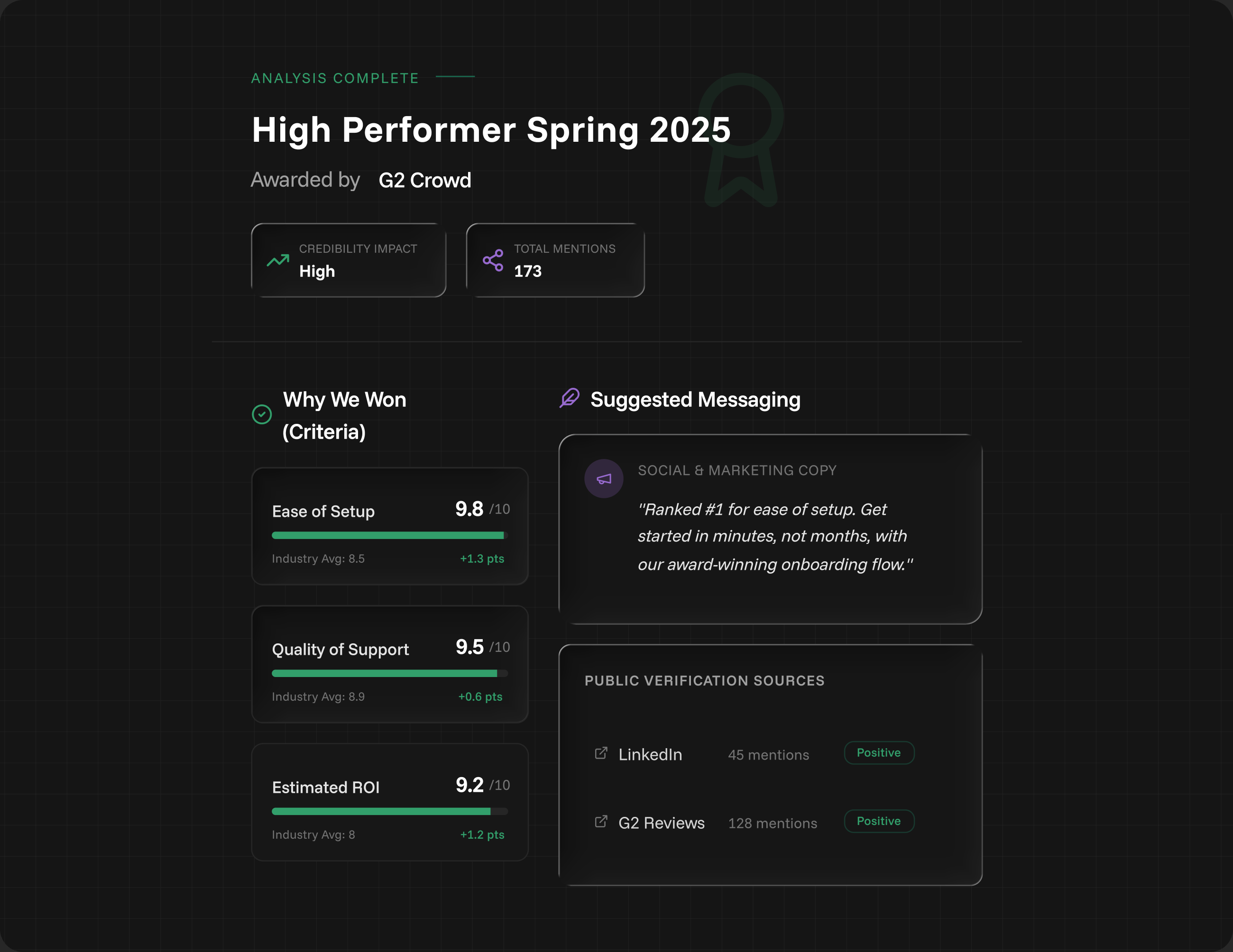 thinkwell™ tracks award mentions, criteria, and the language people use around them, so your team can repeat what created credibility.