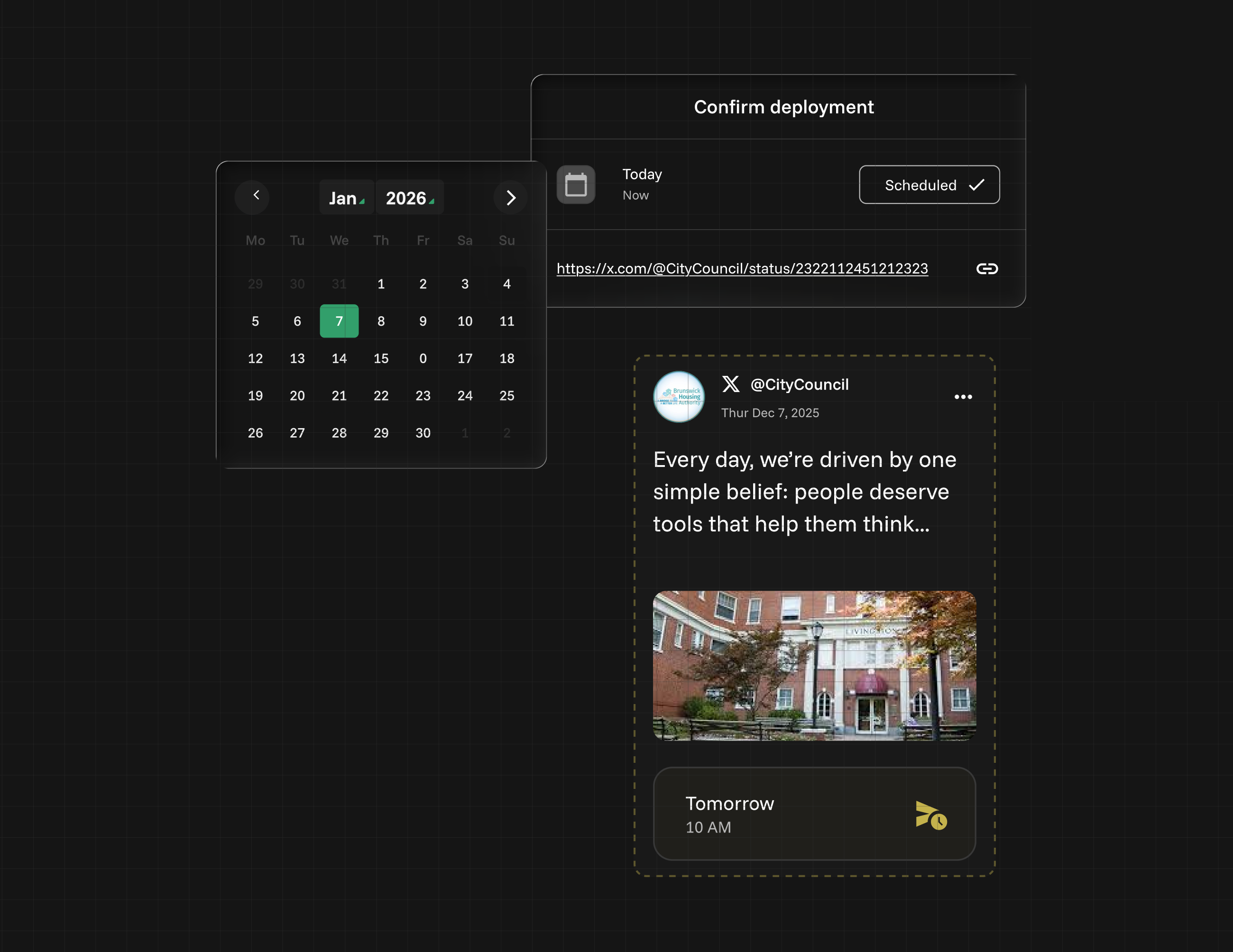 Match each draft to the right channel, date, and audience, then keep approvals and reminders aligned so execution stays clean.
