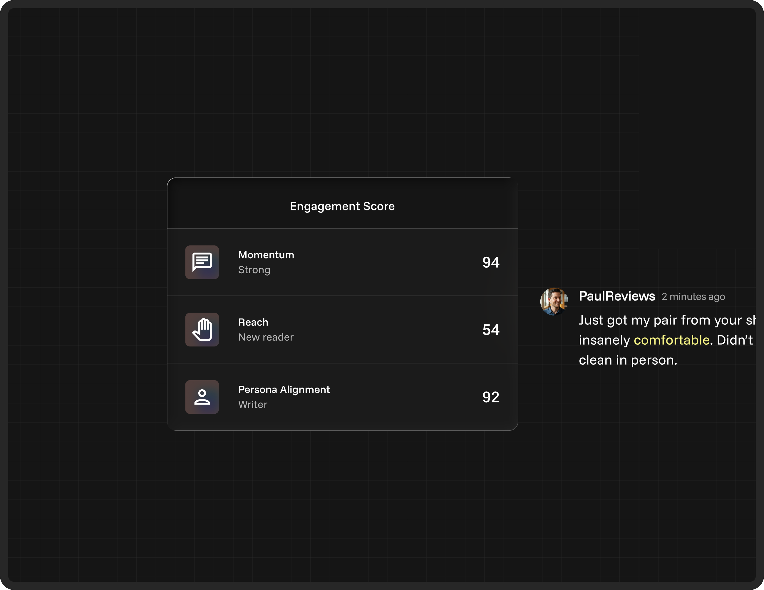 thinkwell™ scores engagement using the full record, including rhetoric, evidence, reactions, emojis, attachments, and votes.